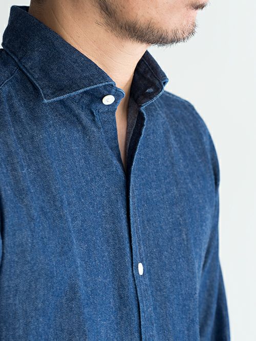 基本はジャケットにあうカジュアルシャツとして作り込んでおり、通常のドレスシャツの様に着丈は長くないので一枚でサラッと着て頂けます。
