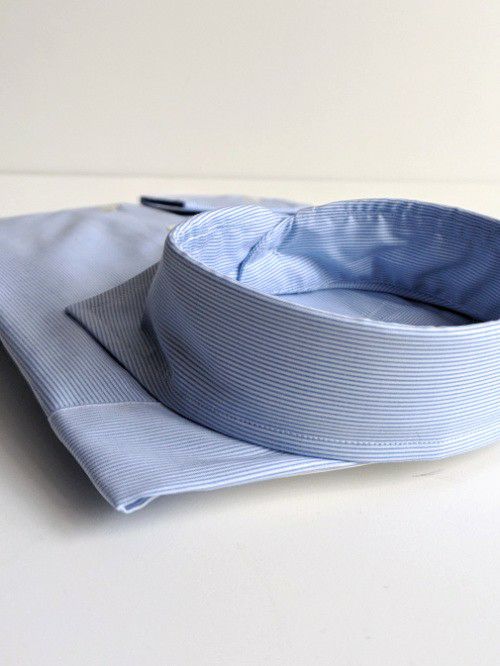 襟やカフの芯地は、肌あたりの良さと生地の光沢がそこなわれないようにフラシ芯を使用しております。