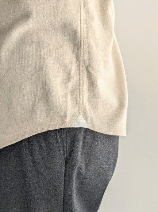 フランネルシャツ独特のマットな生地感が魅力的。襟のデザインと胸元の開きによって大人の色気を演出します。