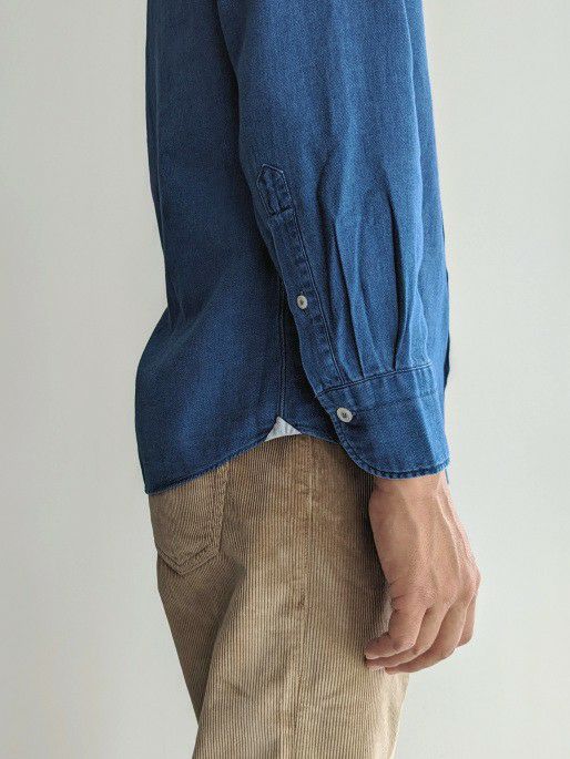 着丈を少し短く設定する事で、シャツインだけでなくアウトスタイルが可能。気軽にスタイリングに取り入れていただけます。