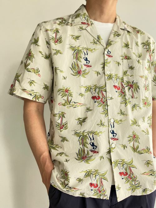 アルティジャナーレ ヤシの木柄オープンカラーシャツAGOP-8 BEIGE