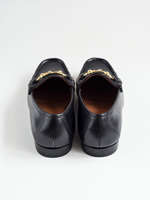 少し艶のあるスムースレザーを使用したホースビットローファー。エレガントさと、決まり過ぎない抜け感のバランスが丁度良く、更にシーズンも問わず足元を任せられる心強い一足です。型押しを施したフルインソックでクッション性にも優れています。