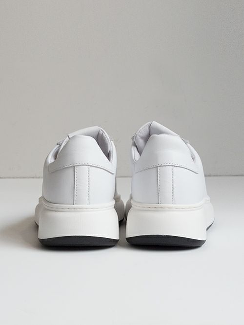 上品でクリーンな印象のレザースニーカー。ボリュームのあるアウトソールが特徴的です。クッション性に優れたインソールは履き心地も良く、シンプルなディテールは様々なスタイリングにフィットする万能な一足です。
