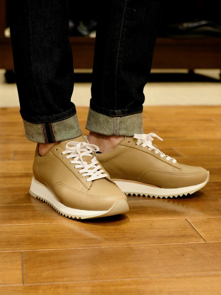 オフスタイルだけでなく、リラックス感のあるジャケットスタイルの足元を彩る上品な大人のスニーカーです。