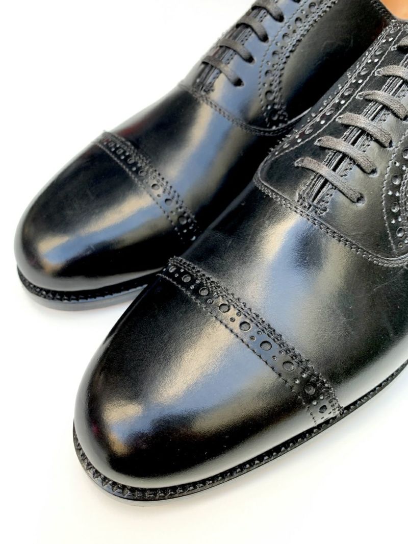 上質なレザーをアッパーに使用した、パンチドキャップトゥシューズ。洒落た大人の足元にフィットする唯一無二のハンドメイドシューズです。
