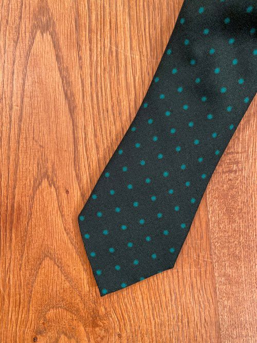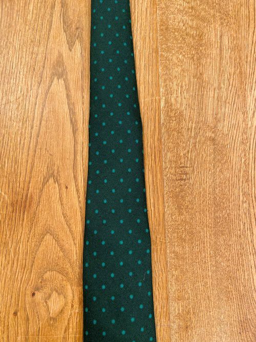 クラシックなドット柄のネクタイは使い勝手が良く、さり気なく取り入れたい一本です。