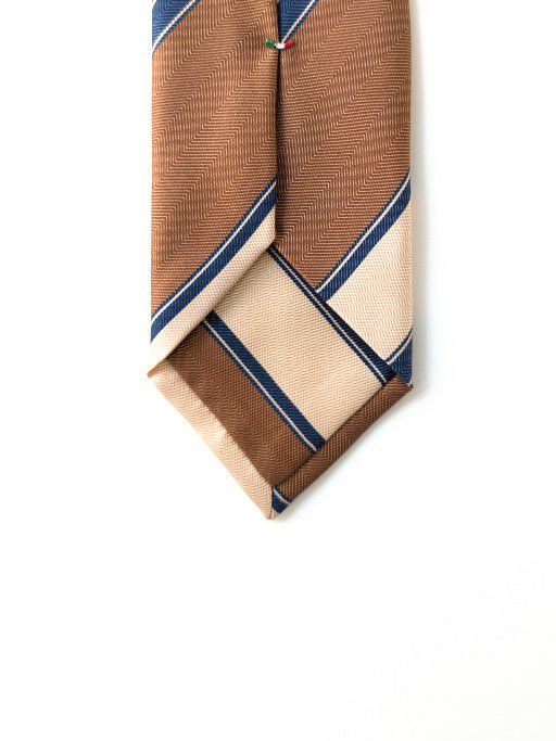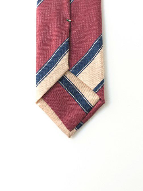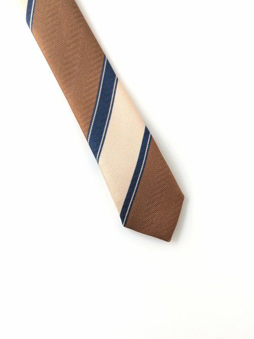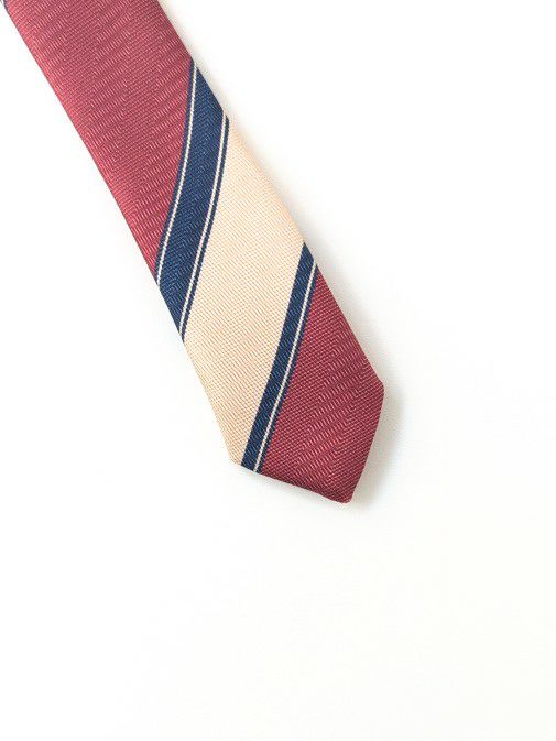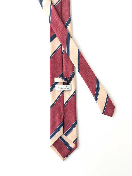 上質なシルク素材を使用したレジメンタルネクタイ。ピッチの異なるストライプがVゾーンに立体感を生み出してくれます。顔映りを明るくする上品な配色も魅力的な一本。