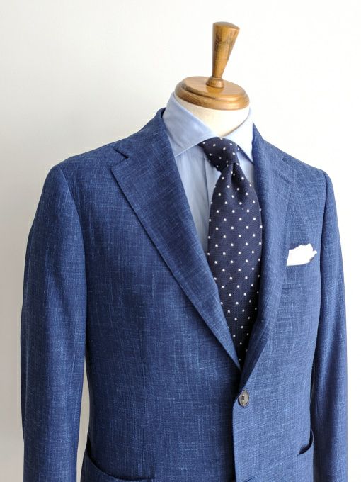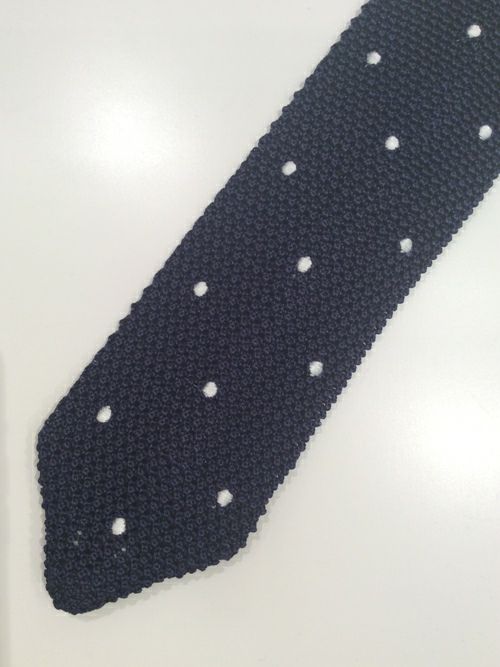 アルティジャナーレ ニット編みドット柄ネクタイ NAVY