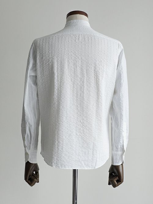 シアサッカー生地で季節感があり、ヘンリーネックのカットソーを思わせるようなバンドカラーで、ジャケットスタイルに程よい抜け感が生まれます。VINCIFIT(ブィンチフィット)のスリムなシルエットです。