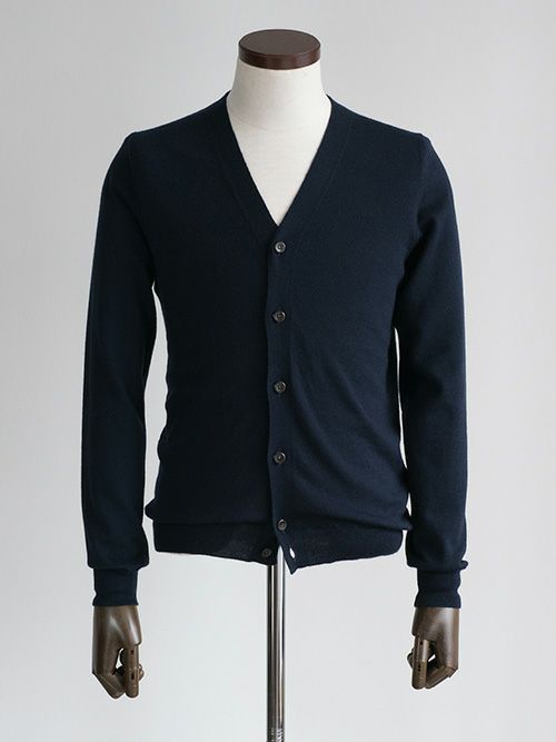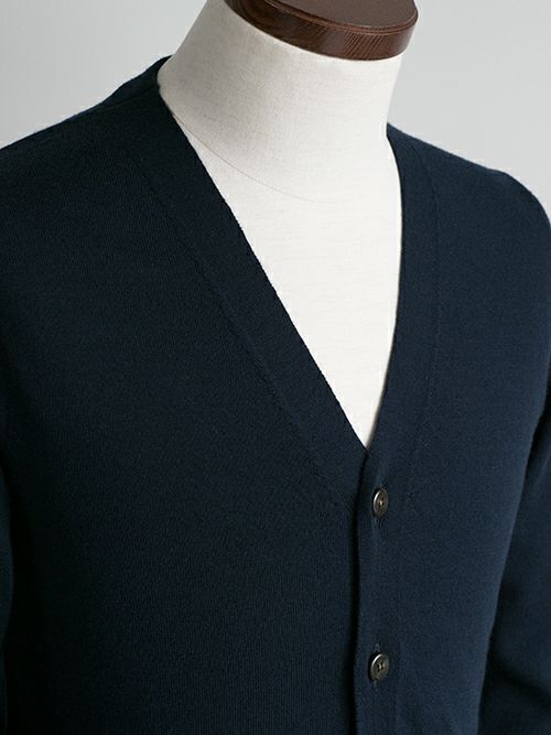 厳選されたウールを使用した、シンプルなハイゲージニットカーディガンです。