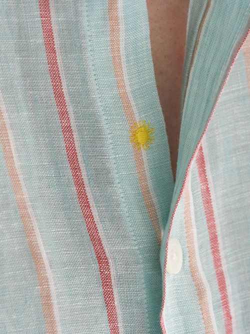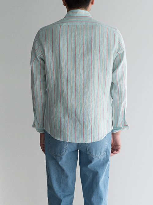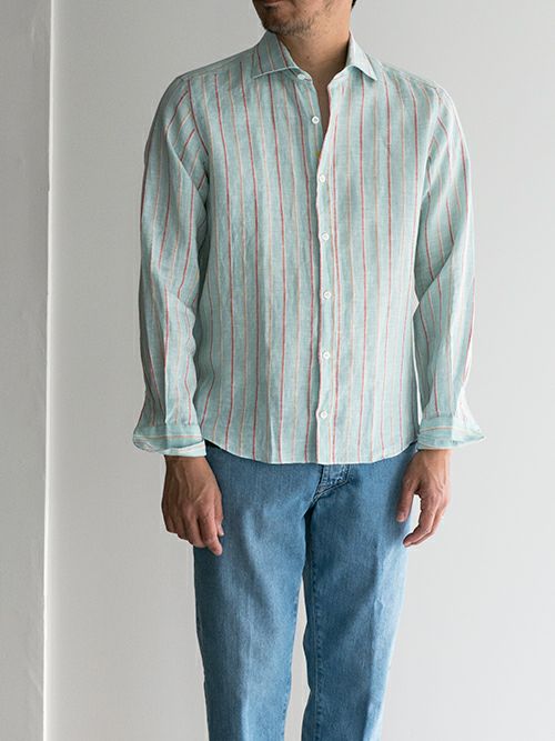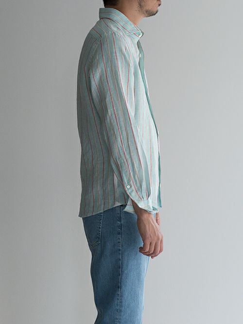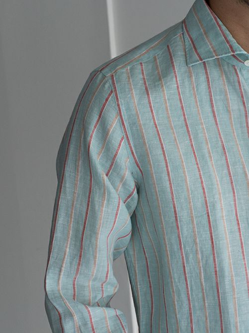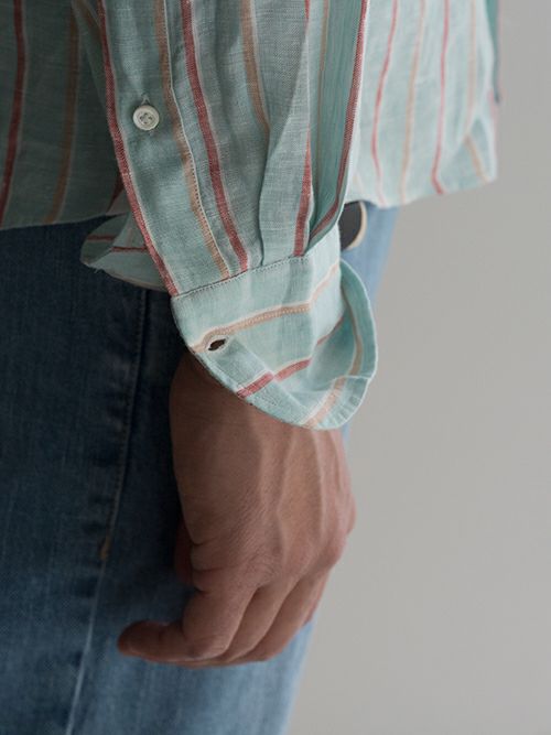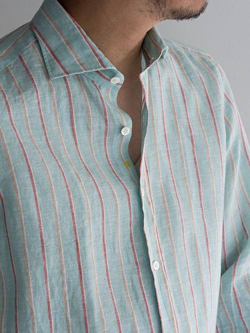爽やかなミントグリーンが春夏シーズンにぴったりのストライプ柄シャツです。肌当たりの良い質感のリネンで仕上げられており、見た目だけでなく着心地も軽やかな一着。こなれた大人のカジュアルジャケットスタイルを演出します。