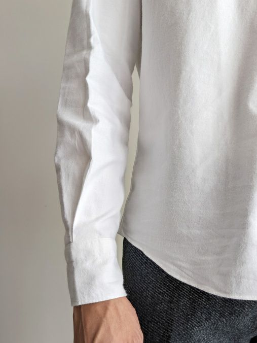フランネルシャツ独特のマットな生地感ですが、襟のデザインと胸元の開きによって大人の色気を演出します。