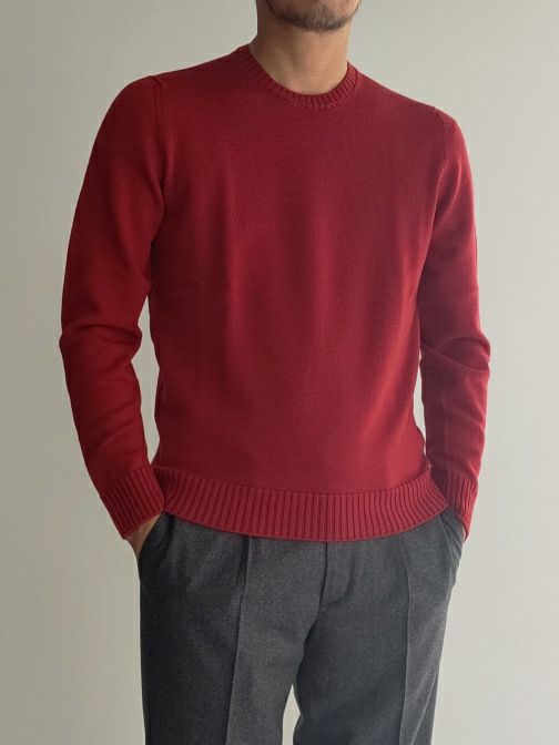 深みのあるカラーリングは一枚での着用も、インナーとしてもスタイリングのアクセントになる一着です。