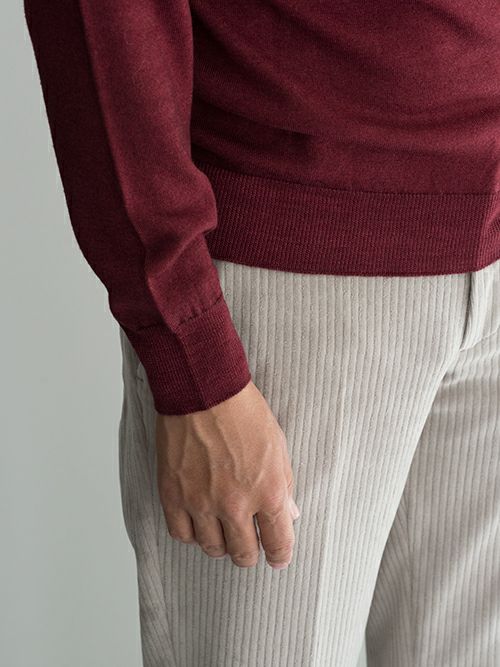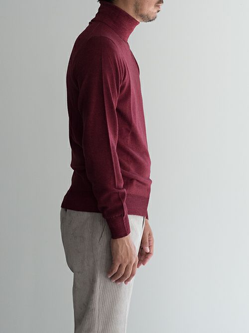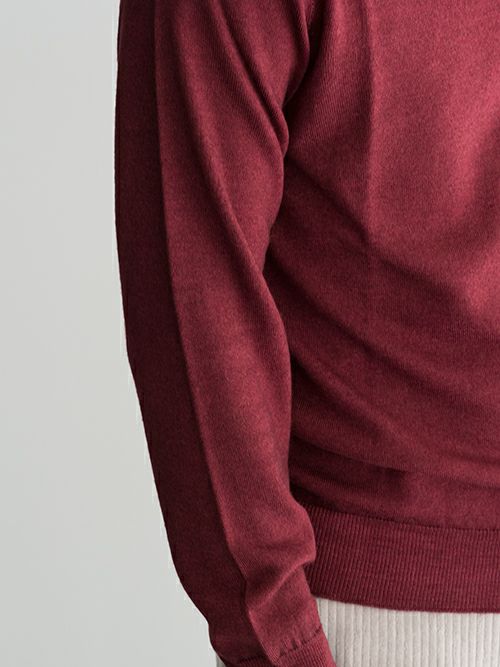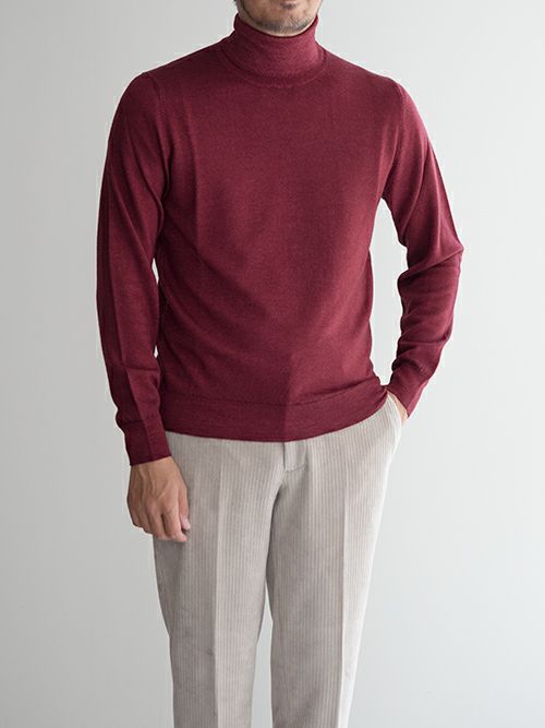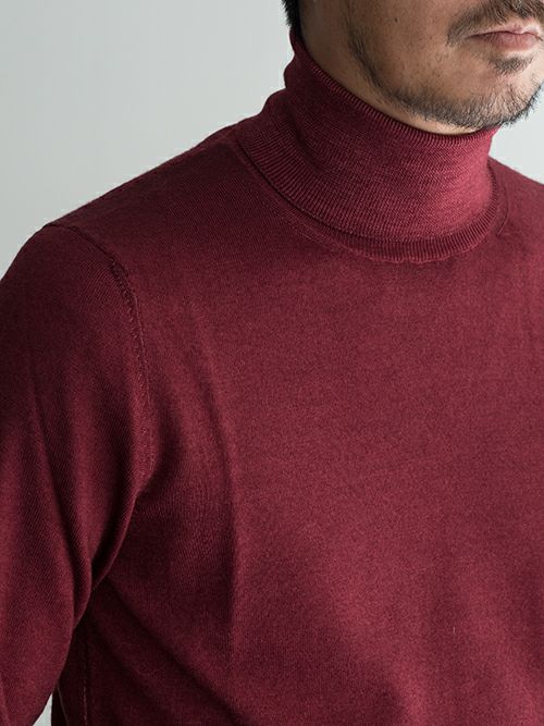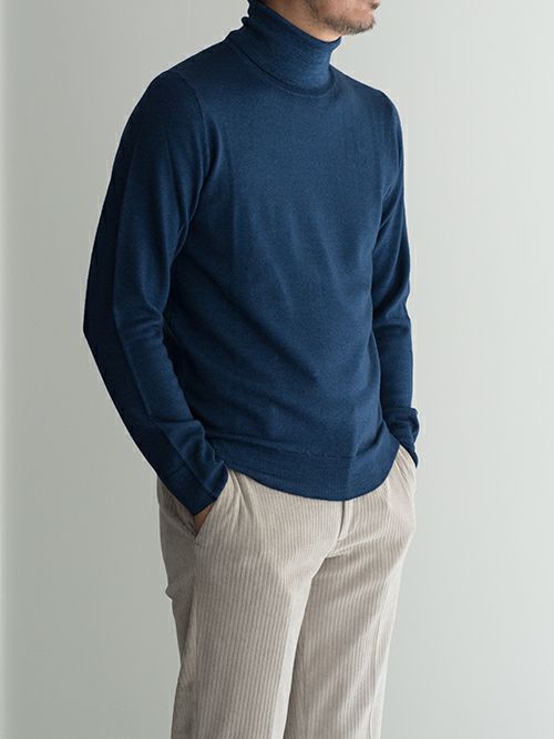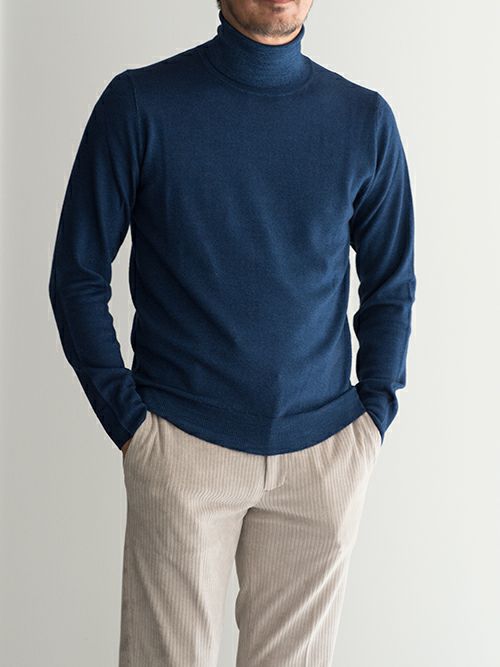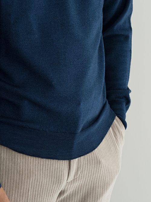 厳選されたウールを使用したシンプルなハイゲージニットです。 1枚でも、ジャケット等のインナーにも重宝するアイテム。