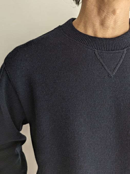 上質なカシミヤウールが柔らかな風合いで、上品な印象のミドルゲージニット。フロントネックのガゼットや、袖と裾のリブ仕様など、ヴィンテージライクなディテールが特徴的です。
