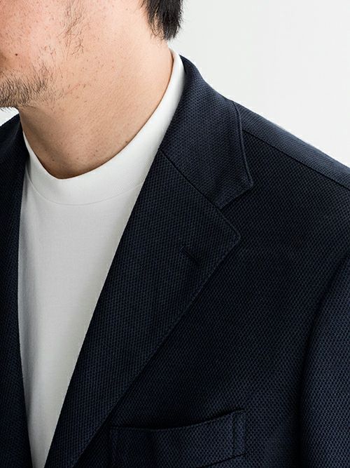着用した際の膨らみのある素材感がとても気持ち良く、それでいてサラッとした涼感も感じさせてくれる上質な一着。