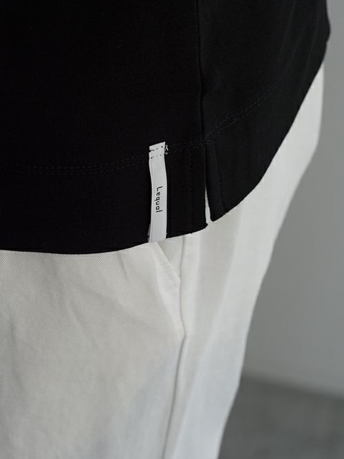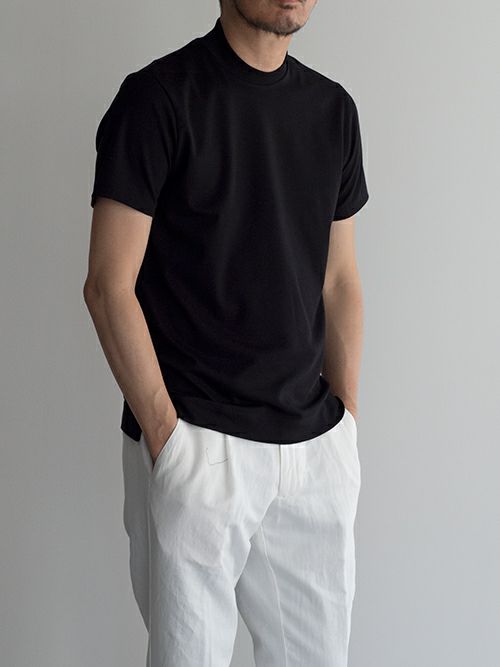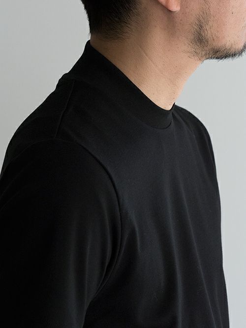 ジャケットのインナーに着用する事を前提に作成され、ネックが前に比べ後ろ側が高く設定されています。ジャケットを羽織ると、後ろからカットソーが見えるようになっており、見栄えだけでなく汚れ防止にもなる計算された作り。
