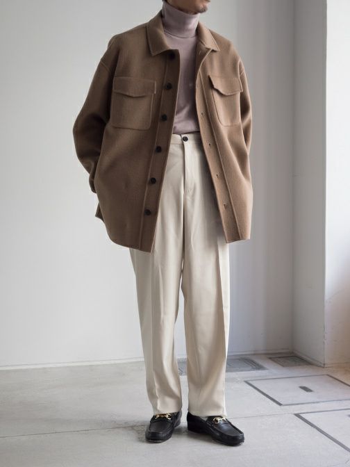 シャツのように気軽に羽織る事ができ、肉感のあるウール生地は温かく軽アウターとしての役割も果たしてくれる一着。