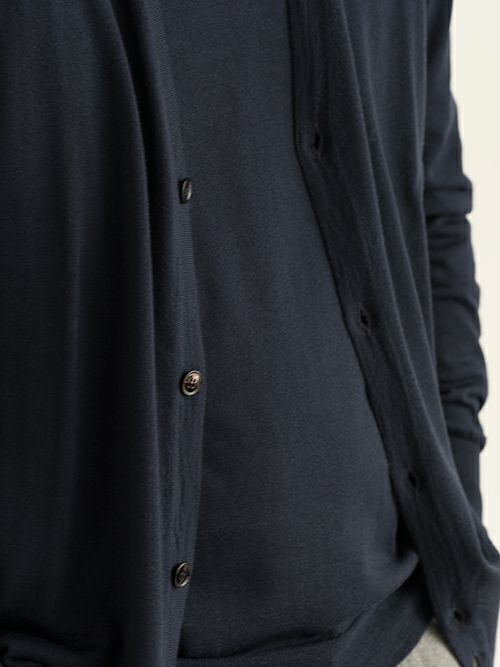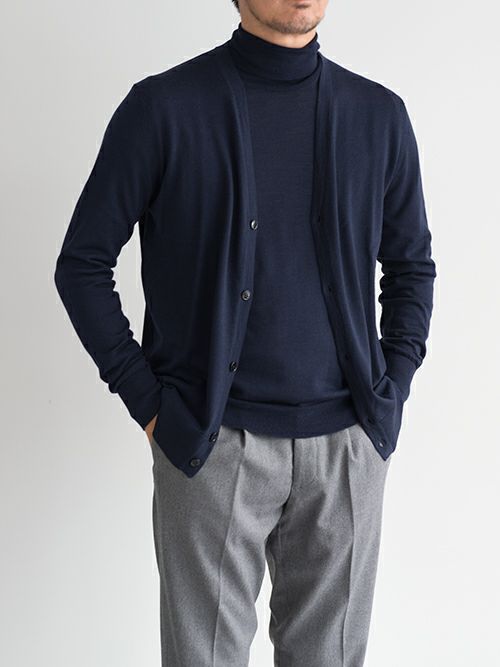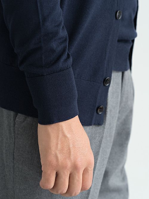 厳選されたウールを使用した、シンプルなハイゲージニットカーディガンです。 カットソーの羽織りや、ジャケット等のインナーにも重宝するアイテムです。