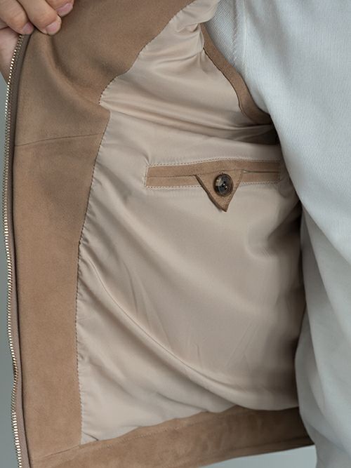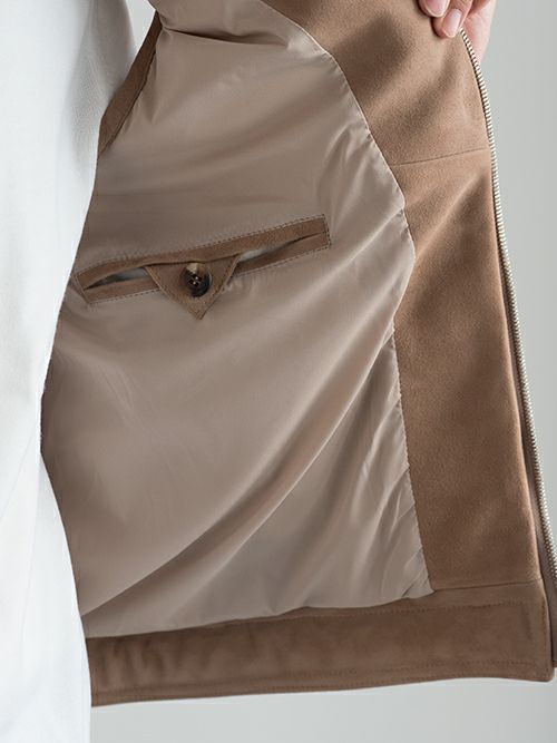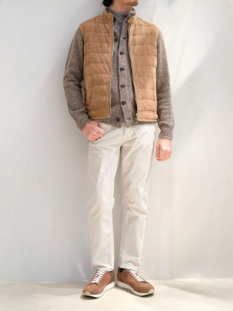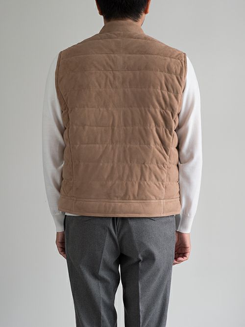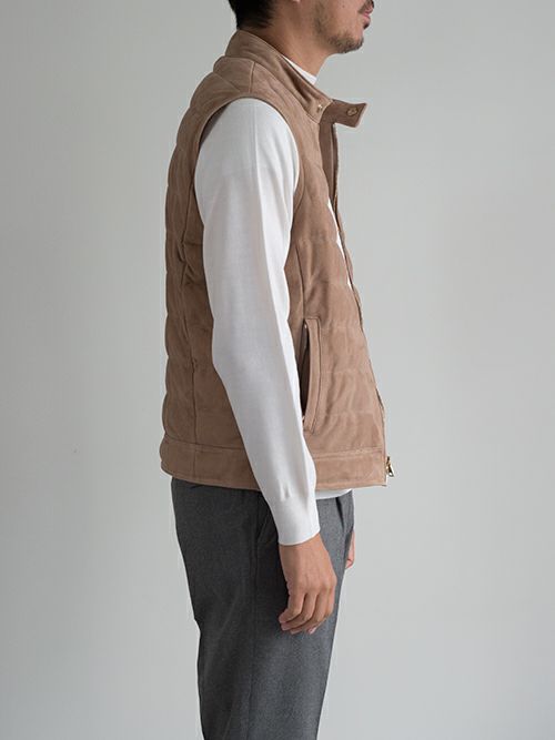 EMMETIの代名詞とも言えるモデル「JURI(ユリ)」。そのJURIをベースとしたゴートスエードのダウンベストです。