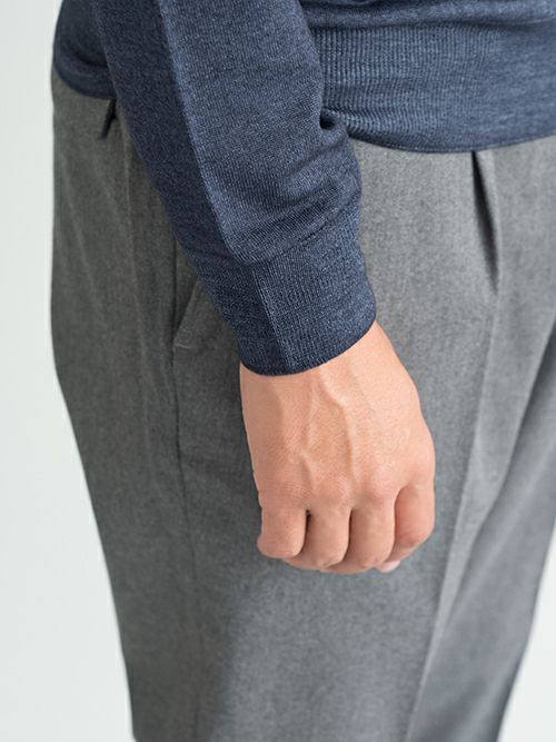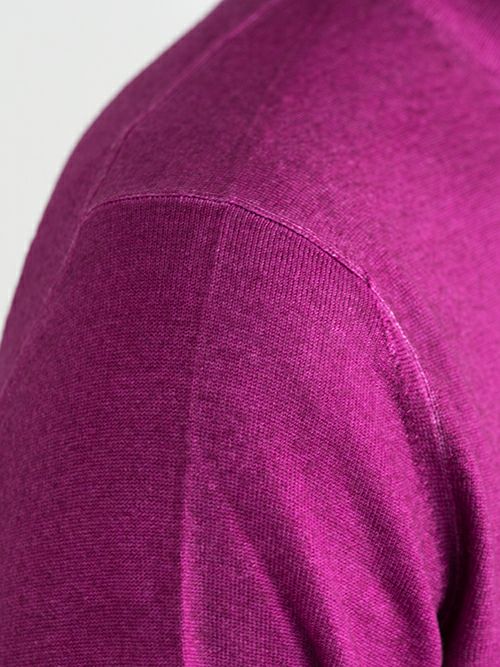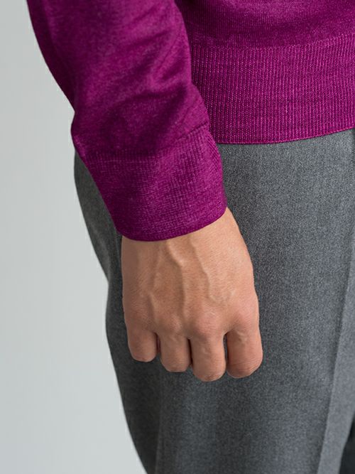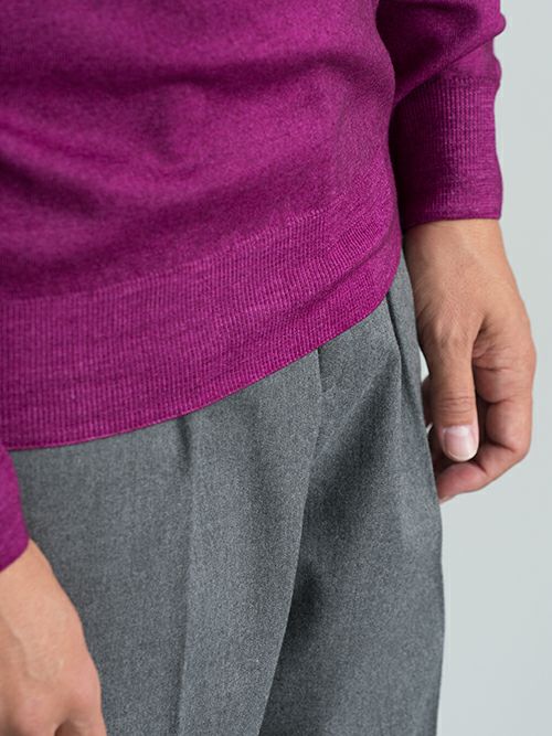 ハイゲージですが、一枚で着用した際にもしっかりと存在感のある適度な厚みが魅力的な汎用性の高い一着で、ジャケットのインナーには勿論ですがレザーアイテムのインナーとしても好相性です。