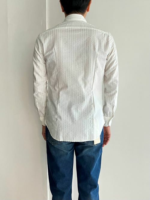 カッティングとパターンの巧みさがこのシャツの真骨頂で、マシンメイドのシャツとして妥協なく作り込んだハイエンドなコレクションです。