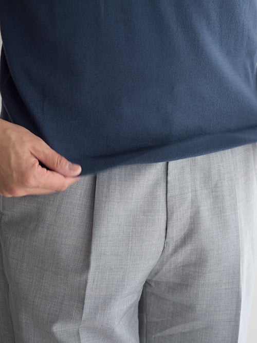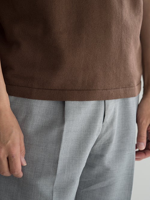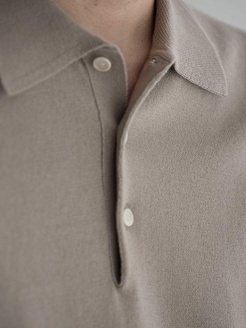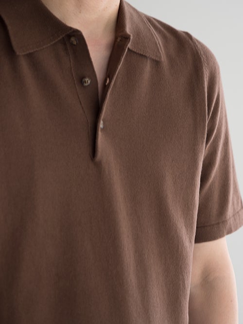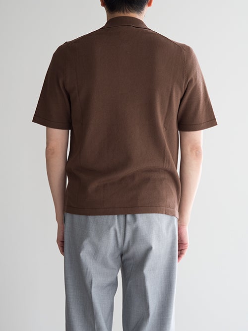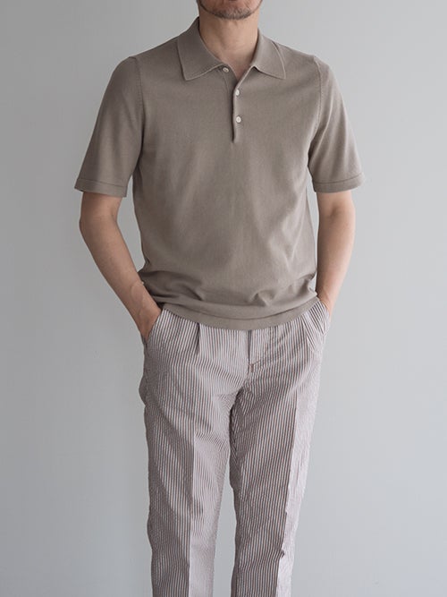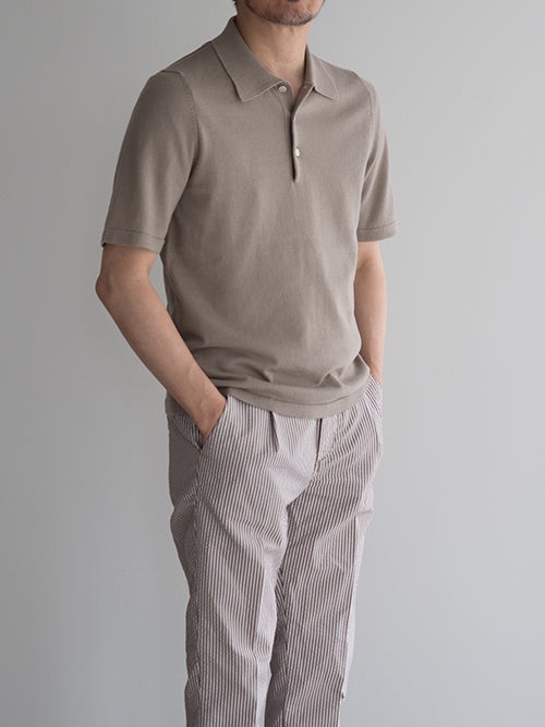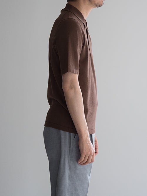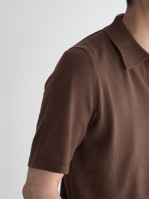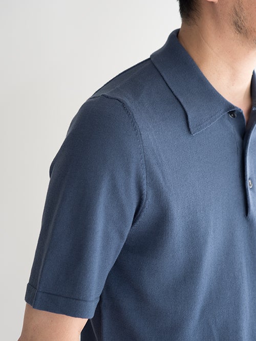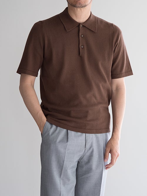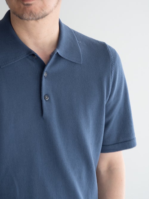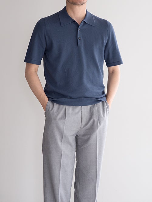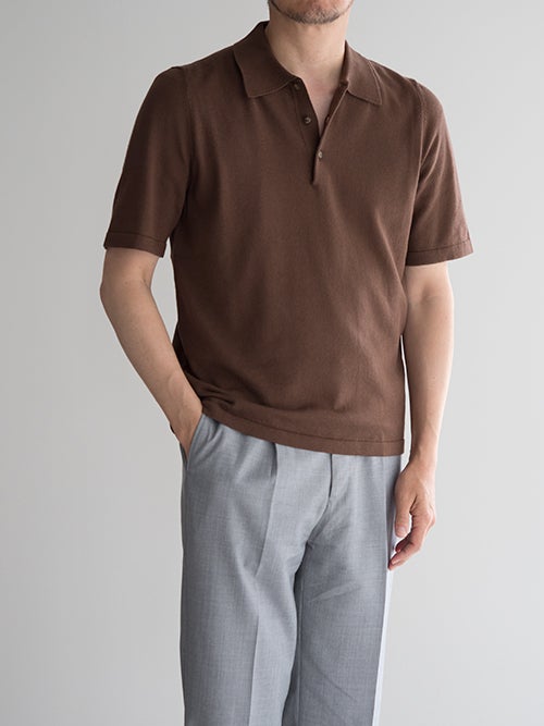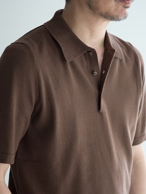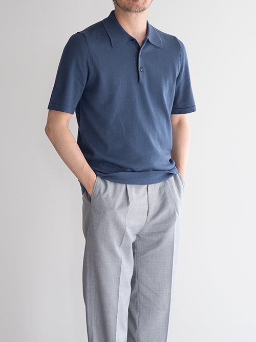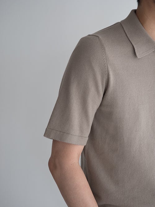上質なコットンを使用した肌触りの良いニットポロ。袖と裾にリブはなく、カットソー然としたディテールです。カジュアルなコーディネートにフィットするので、デイリーに使いやすく、それでいて上品さも兼ね備えた一着。