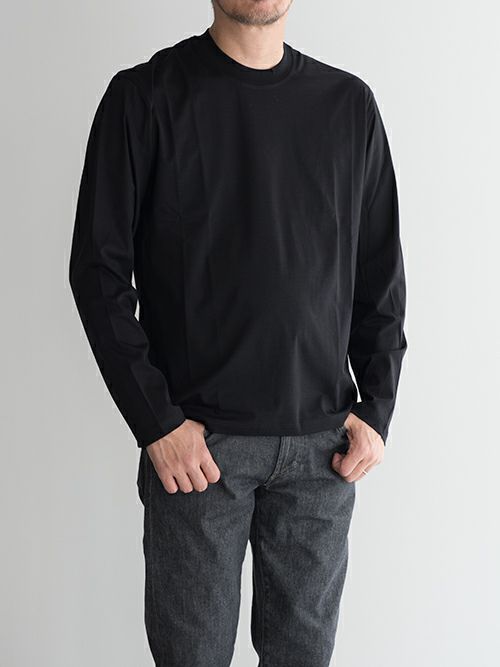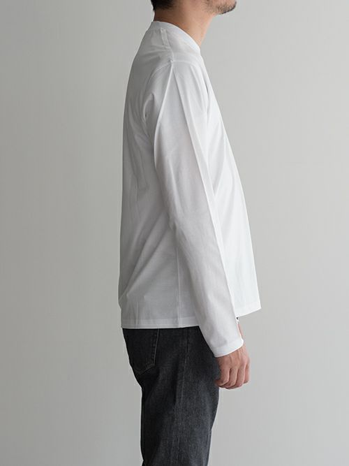 ワイドパンツに合わせたミニマムなコーディネートから、インナー使いとしても活躍する汎用性の高い一着です。