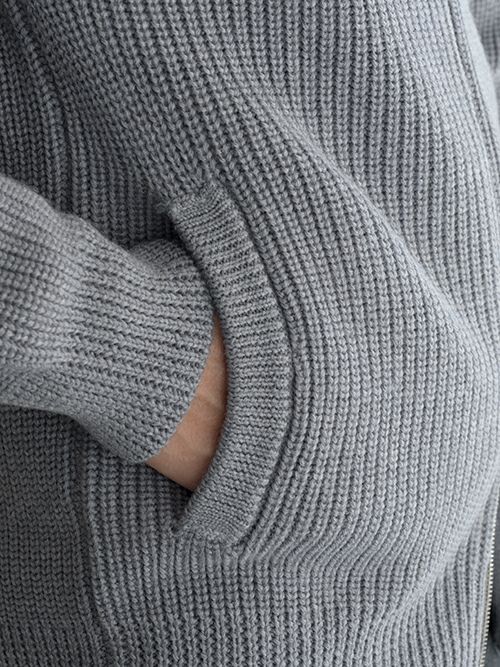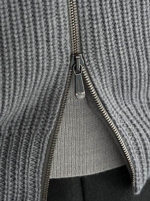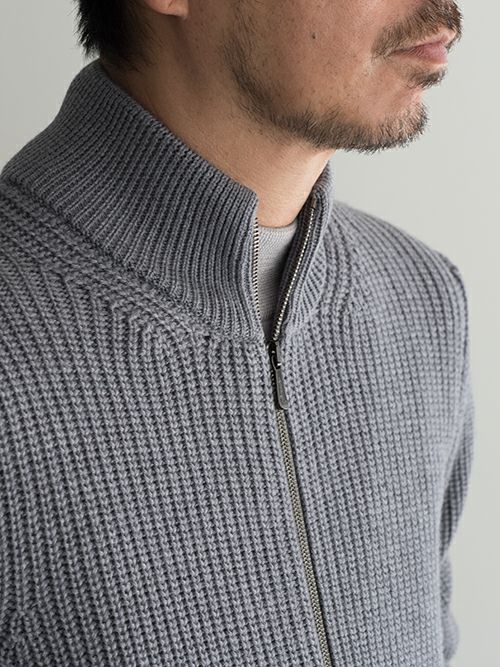 メリノウール100%のドライバーズニット。ダブルジップ仕様、サイドポケット完備、リブ編みによる立体感と伸縮性、5ゲージの程よい厚みと、使い勝手が抜群の一着です。