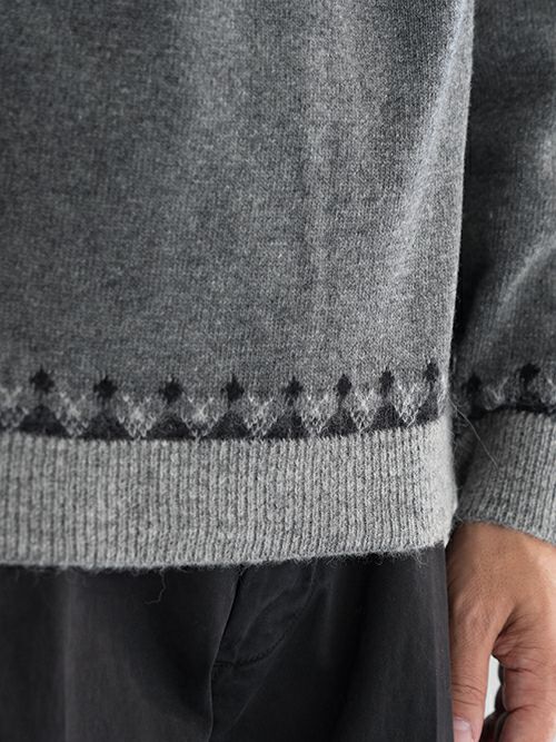 コーディネートのアクセントになる柄物ニットですので、シンプルなアウターやボトムスと合わせていただくと、上品にバランスの取れたスタイリングが叶います。