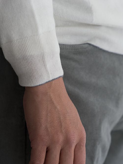 一枚での着用はもちろん、ブルゾンやジャケットのインナーにも適したニット。馴染みのよいカラーリングで、様々なコーディネートに取り入れられる汎用性の高さも魅力的です。