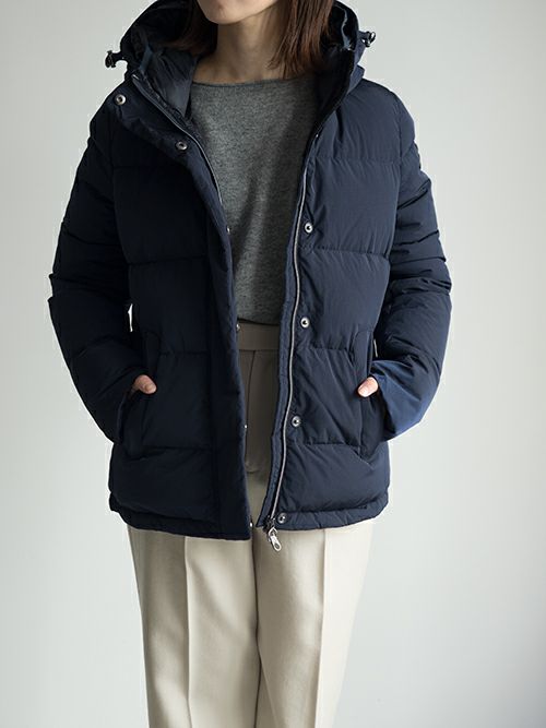 コンパクトですっきりとしたシルエットが魅力的なショートダウン。