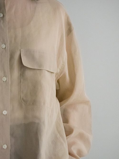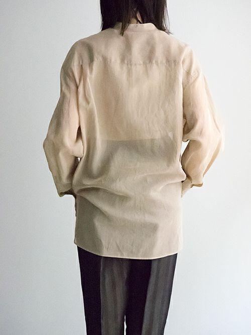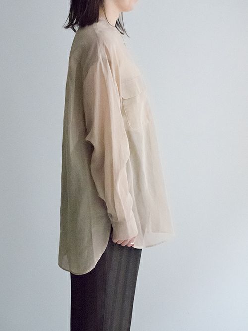 ハリがあり上品な透け感のコットンオーガンジーの生地を使用したスタンドカラーシャツ。