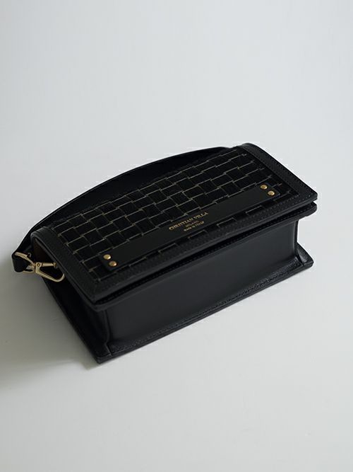 クリスチャンヴィラ 2WAYバッグです。格子状に施されたブラックのハラコが上品な見た目。シックな大人の装いにマッチするデザインです。マチ付きで容量もあり、取り外し可能なストラップ付で、シーンに合わせて変更していただけます。