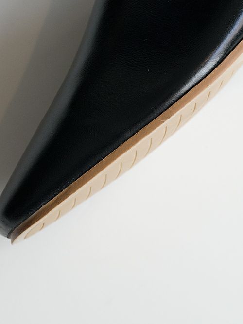 すっきり見えるミニマムな印象が魅力的なスリッポンパンプス。使用されているレザーはしなやかで足馴染みが良く、甲深のデザインも相まって快適な履き心地の一足です。