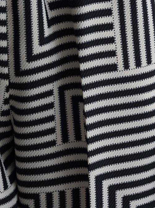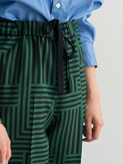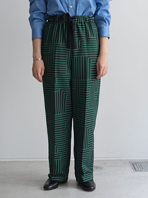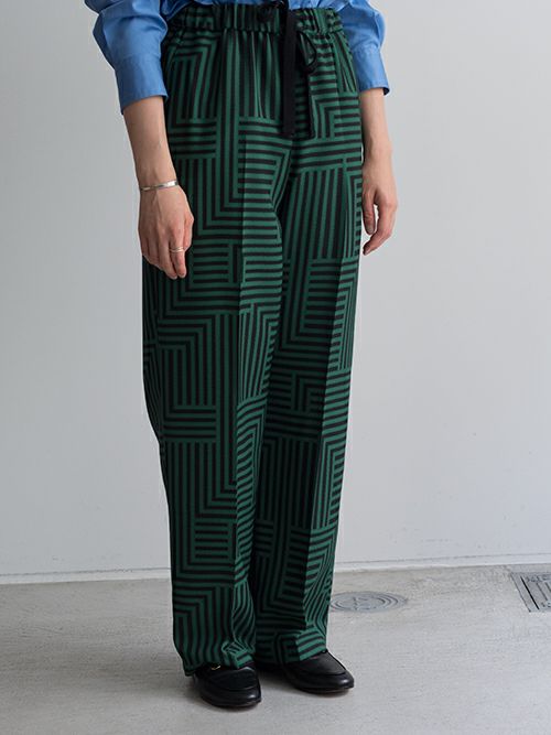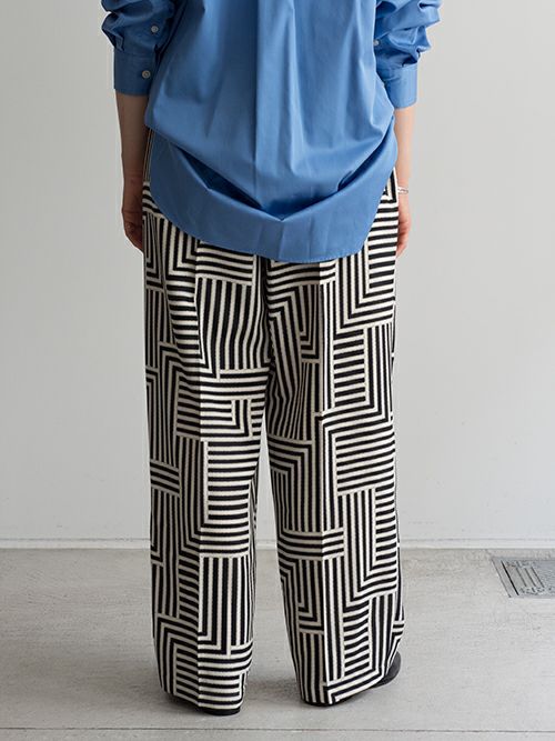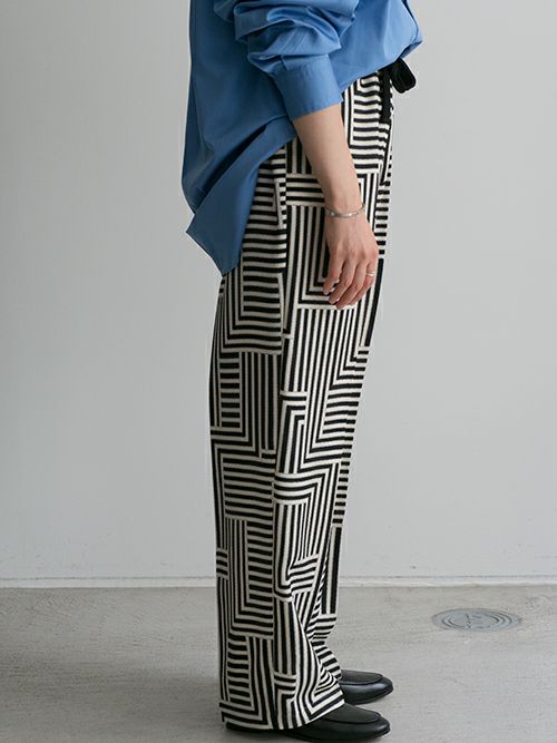 大胆な幾何学プリントが引き立つワイドパンツ。