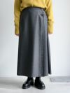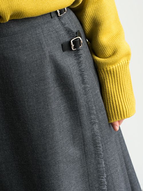 上質なキルト素材を使用した巻きスカート。サイドのレザーベルトでウエスト部分を調整して頂けるので、トップスインのスタイルもきれいにキマります。身長問わず履きやすい着丈になっており、フラットシューズやブーツなど足元も選ばずに楽しめるのも嬉しいポイントです。
