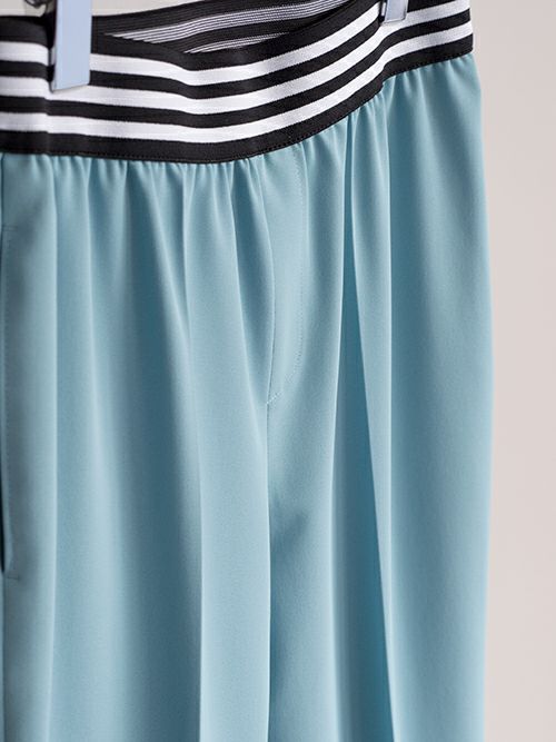 ウエストのボーダーベルトはフィット感がありながら、最小限のゆとりを保ちお腹・腰回りをすっきりと見せてくれます。