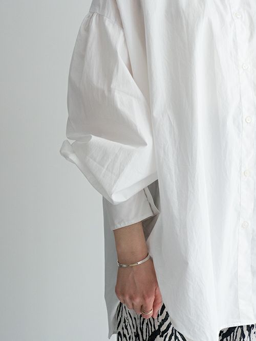 80Sコンパクトタイプライターシリコン ハイカウントでマットなルックスのコットンタイプライター。シリコン含浸加工によるしなやかな反発感がある風合いとさらっとしたタッチが特徴。コットンワッシャー加工を施すことで程よいリラックス感がプラスされた心地よい薄手素材です。前後着用可能でスタイリングの幅を広げてくれます。小さめな衿を立てても凛とした印象にもなります。