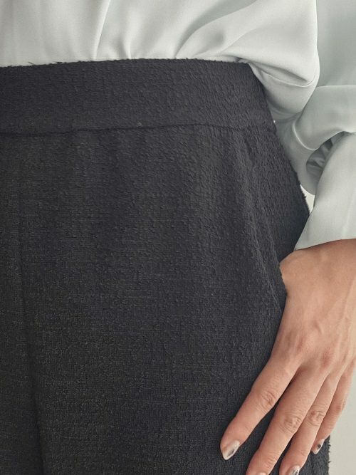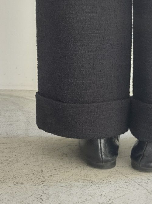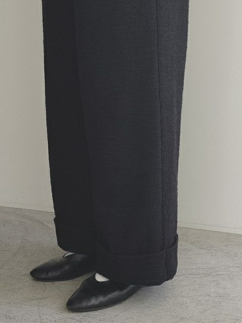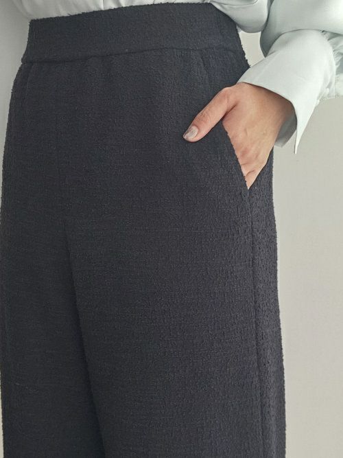 厚みがある割には太過ぎず、すっきりと美しいシルエットを描いてくれます。ウエストはゴム仕様になっており、ストレスフリーな履き心地。全体にストレッチが入っており、少し短めの裾丈ですのでショートブーツなどを履くと冬のマストアイテムになること間違いなしです。
