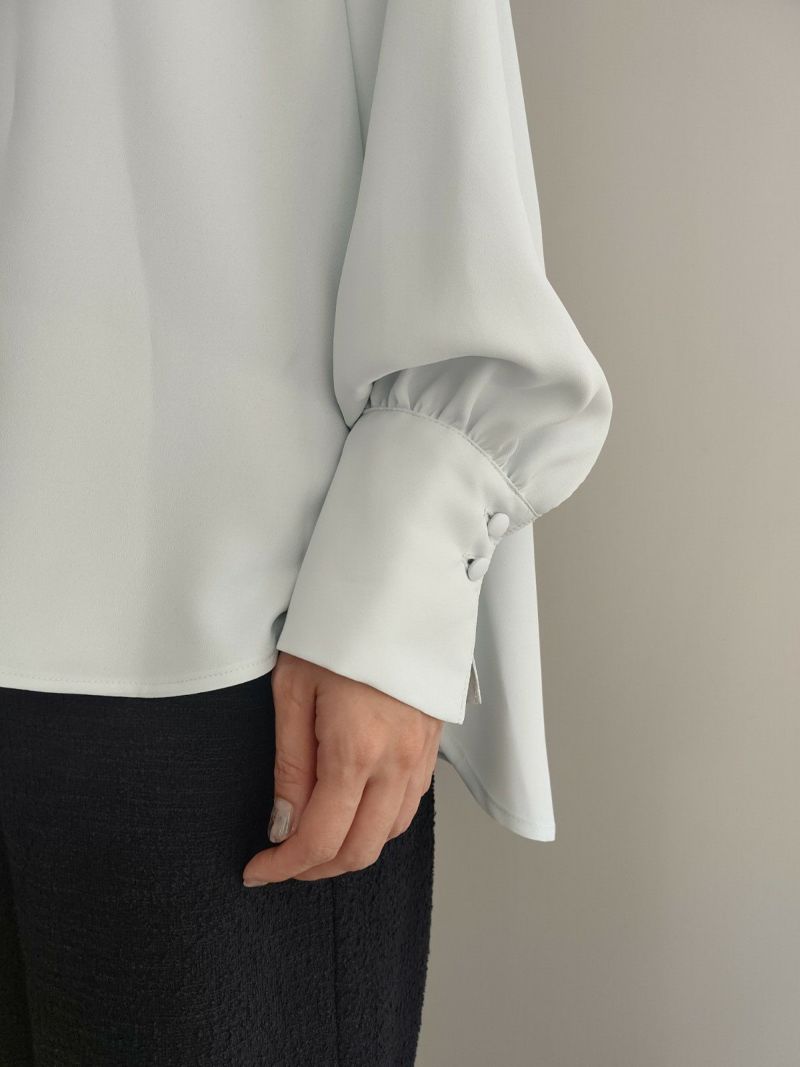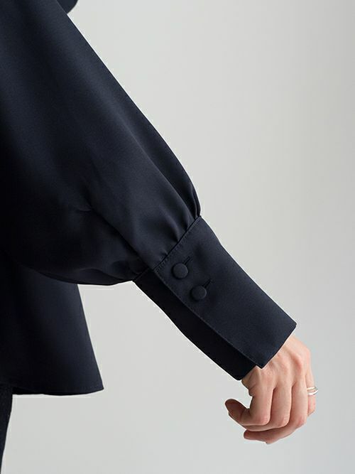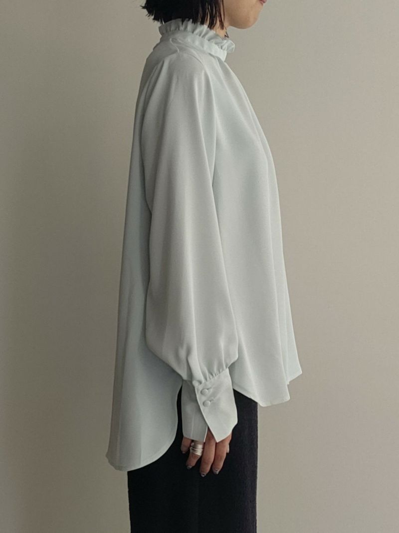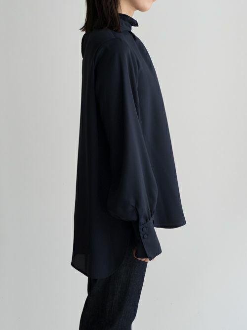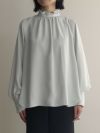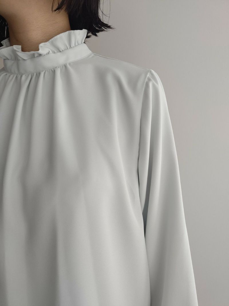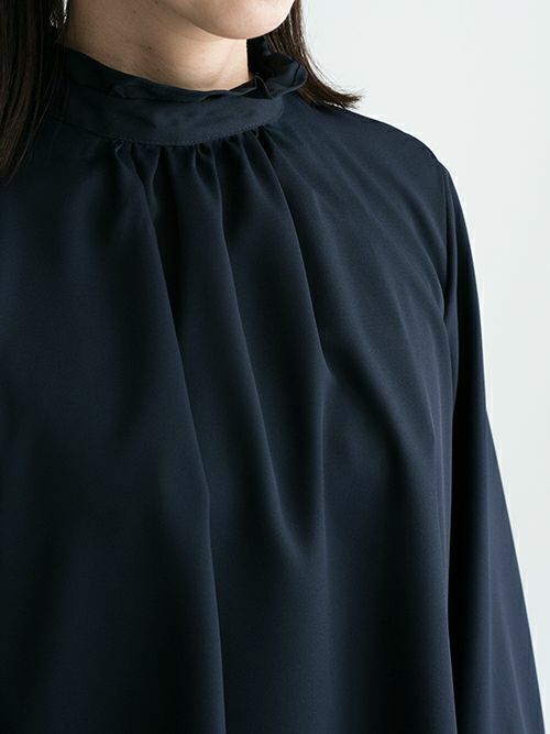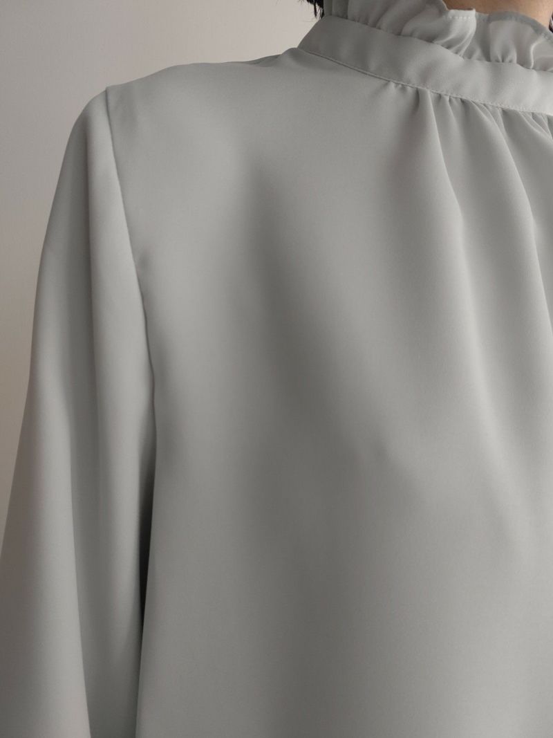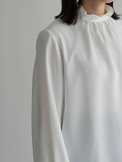 襟とフリルとふんわりとしたギャザーがポイントのブラウス。