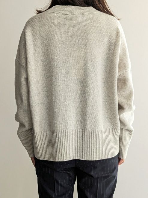 ウール、カシミヤ混の柔らかく温かなニットカーディガン。シンプルなデザイン故に、生地の上質さが際立つ一着です。