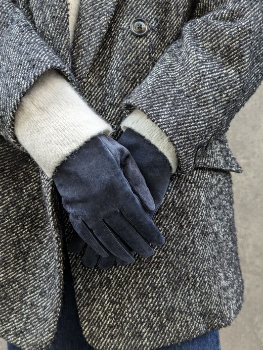上質なスエード生地を使用したレザーグローブ。しっとりとした質感で細身のシルエットは、女性らしいエレガントで柔らかな佇まいです。