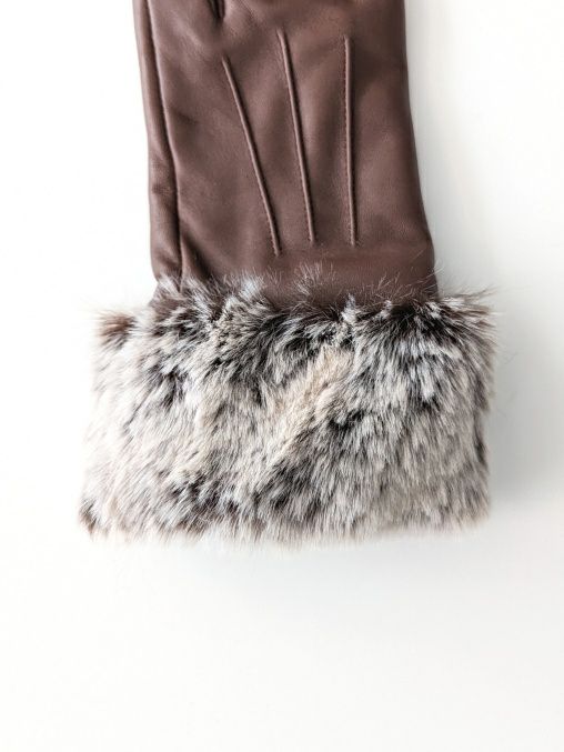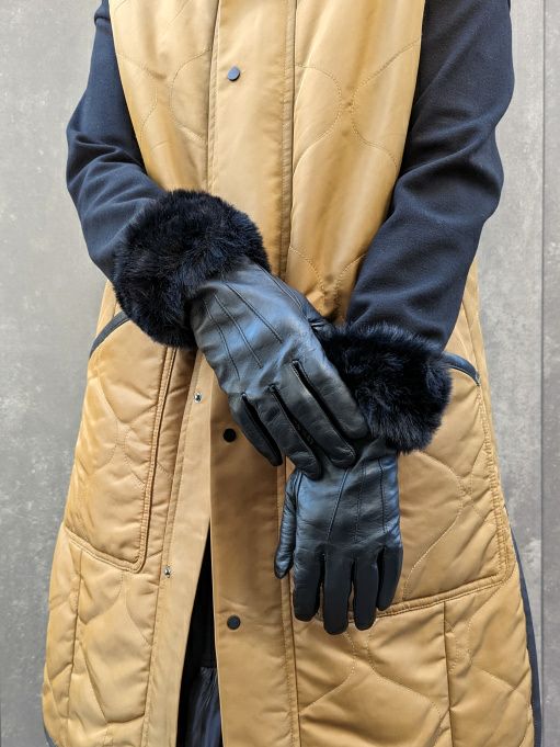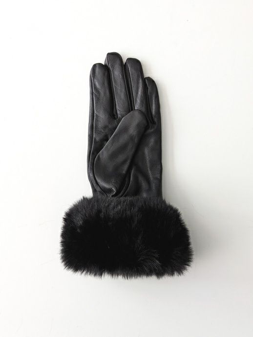 上質なスムースレザーを使用したグローブ。しっとりとした質感で細身のシルエットと、上品なエコファーをあしらったデザインは女性らしいエレガントな佇まいです。