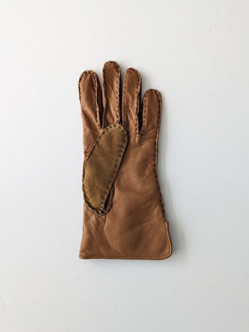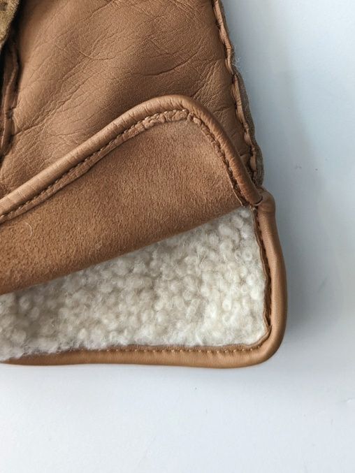 冬らしいシープスキンのレザーを使用したスエード地グローブ。使い勝手の良いミニマムデザインで、裏地甲の面にはウールボアを配しており保温性も申し分ありません。