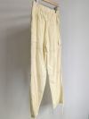 ヴィンテージのカーゴパンツをベースに現代的に再構築したデザインのパンツを薄手のナイロン生地で作りました。ミリタリーのアイテムと、薄くて軽くモードな素材とのMIX感もポイントです。ペーパーライクなタッチがシャリシャリと気持ちよく、奥行きのある独特な表情を醸し出し、モード感漂う表情豊かな心ときめく美しいアイテムになっています。原料にGRS認証を取得しているリサイクルナイロンを使用したサスティナブル商品です。仕上げにはフッ素フリーの撥水加工を施しており、弱撥水が謳えます。ご家庭で手洗い可能なイージーケアも嬉しいポイントです。
