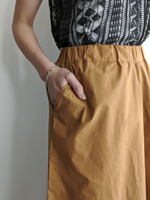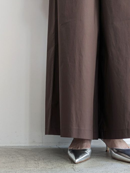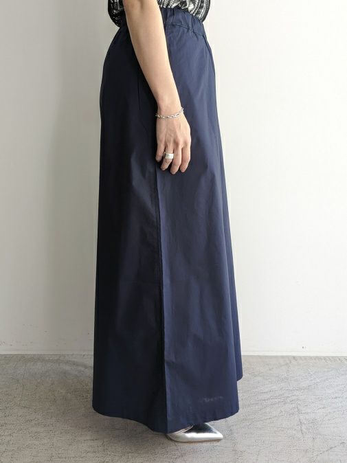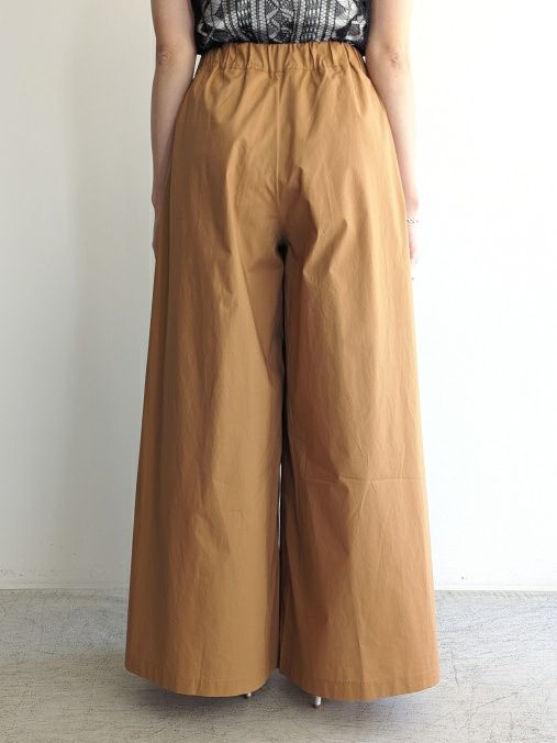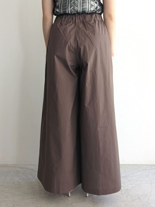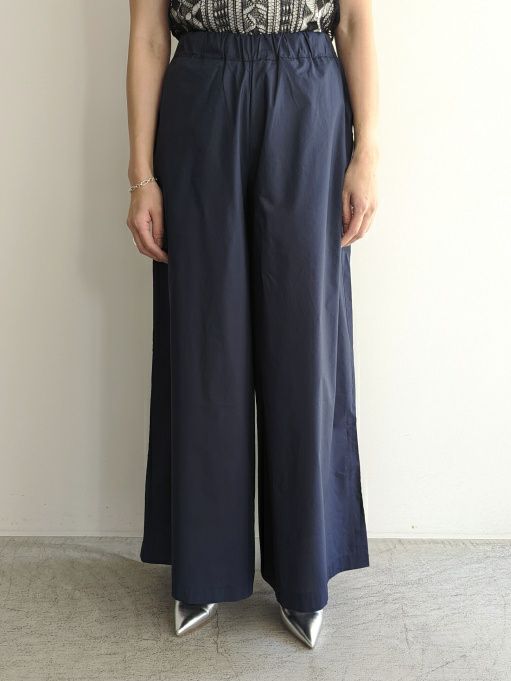軽やかでフレアスカートのような広がりが女性らしいワイドパンツ。上質なコットンを使用しているので肌当たりも柔らかで、ウエストはゴム仕様で余計なものがなく、洗練されたシンプルなデザインです。ロベルトコリーナのニットとも相性抜群です。