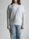 シルエットはドロップショルダーで袖口のみをシルクの糸を使いさり気なく肌あたりをソフトにしてくれます。ボリュームのあるボトムやワンピースなどのコーディネートにオススメです。