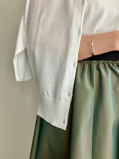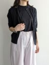 2023年シーズンにもご好評をいただいた人気のモデル。クラシカルかつ、トレンドでもある半袖カーディガンは、羽織としてはもちろん、前ボタンを閉じてミニマルなプルオーバーとして着用するのもおすすめ。