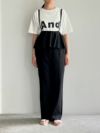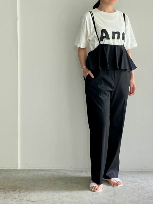子供っぽくなりがちなサロペットを胸下のゆるやかなフリル使いで女性らしさを演出しています。細い肩紐はカジュアル感を主張せず、華奢で繊細な雰囲気が大人な可愛らしさを表現してくれます。センタープレス入りでジャケットなどのコーディネートでキレイ目なスタイリングもお薦めです。